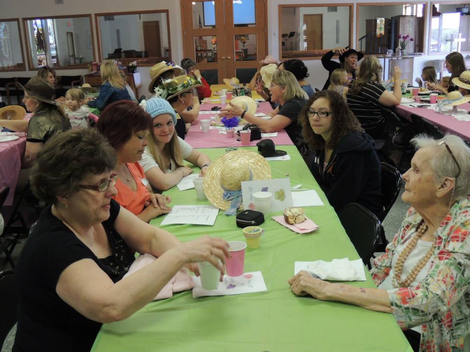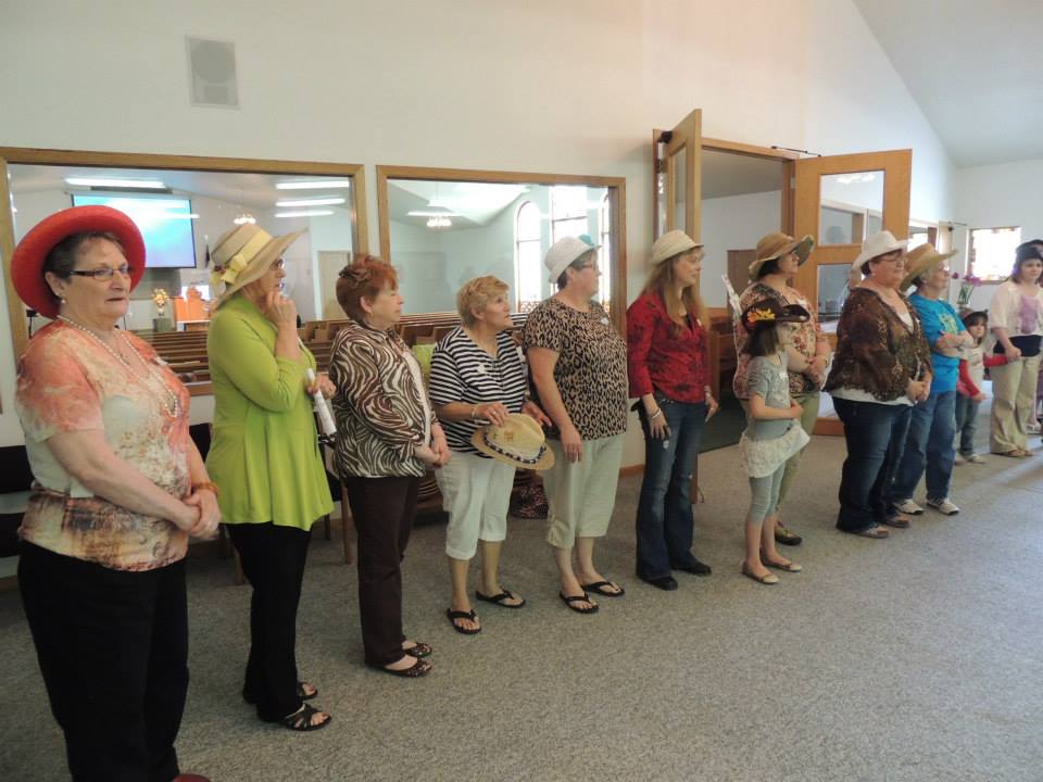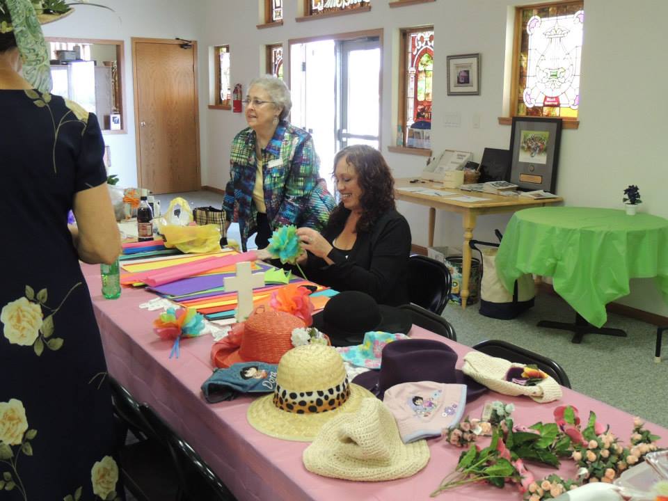 Our theme was Hats Off to Godly Mothers so we invited attendees to wear a hat of their choice to this event. What a wonderful time we had during the Hat Parade as hat-wearers shared why they chose the hat they wore! Guests then selected crafts to create – either a fragrant sachet, tissue paper flowers, or decorating handkerchiefs or hats with trinkets, charms, flowers, ribbons, and scripture. Before closing, mothers received gifts for certain categories – oldest, youngest, mother who raised the most children, who traveled the farthest, and the most unusual hat and to those who contributed in a special way to enhance the event. All young girls chose a beautiful hair-bow as their gift for coming.