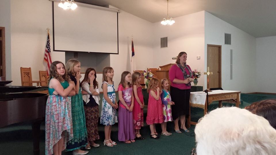 Girls presenting a Readers Theater of women in the Bible who loved and followed the Lord.